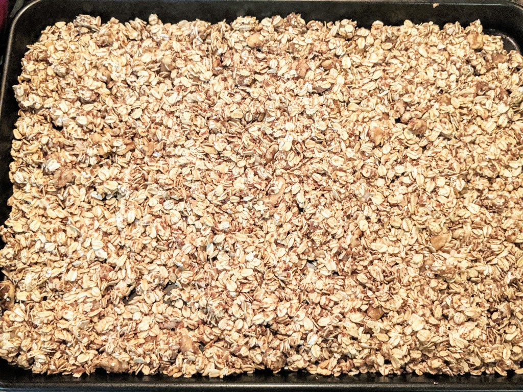 4.) Spread on a baking sheet. Bake at 350° for about 27 minutes, stirring every 10, until crunchy and golden.