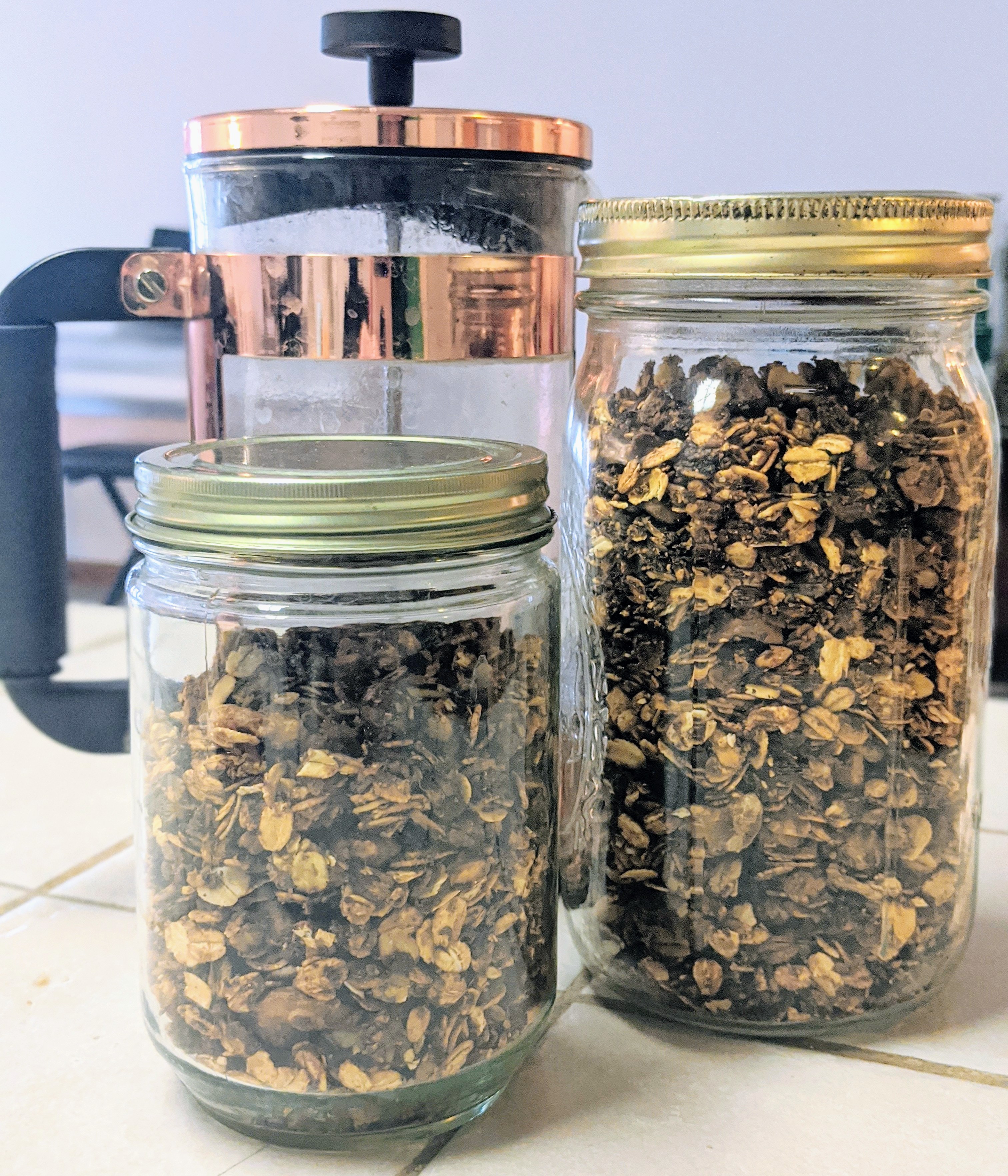 My breakfasts have LEVELED UP since I started keeping this homemade granola on hand. You can add varieties of nuts, seeds, and dried fruits to the simple base to suit your taste. It’s great for snacking, too!