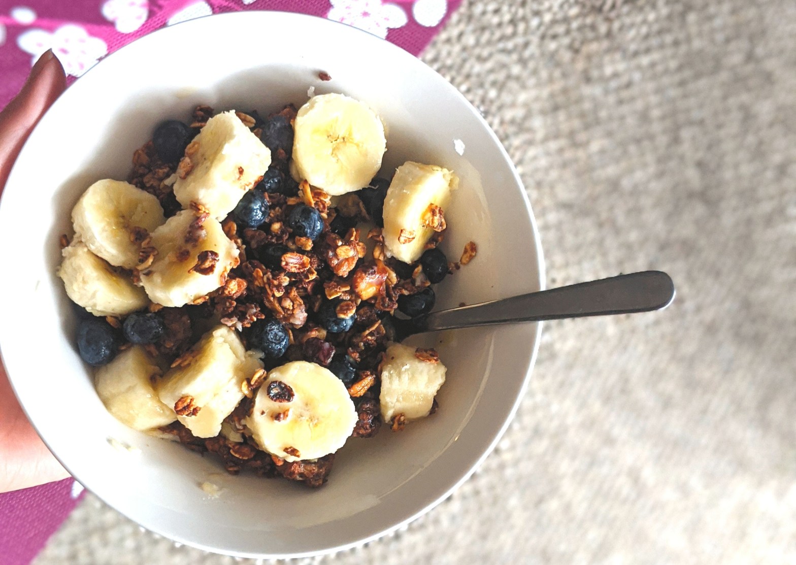 6.) Enjoy with your favorite plant-based milk & fruit! You can also pack it as a dry snack, or prepare it in small containers with yogurt for a portable breakfast.